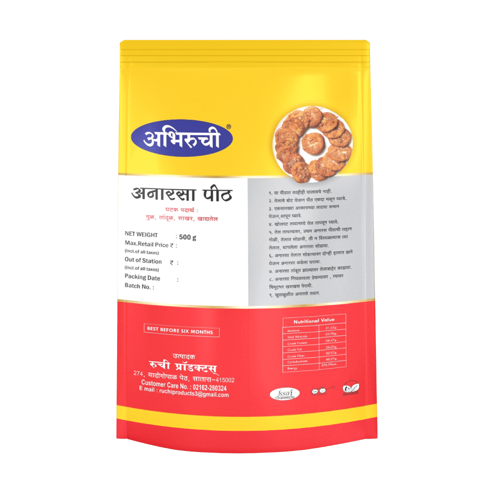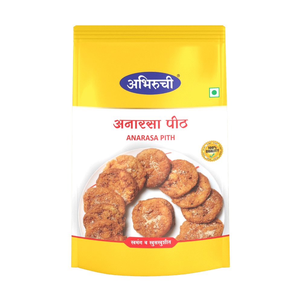 The Abhiruchi Anarsa Pith makes it easy providing flour made of rice, jaggery and sugar that can be pleated into delicious anarsas, by giving a touch of oil and then following the simple recipe steps.