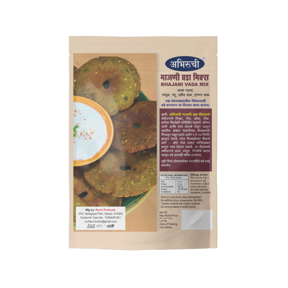 Made from rice, wheat, Udeed dal and Harbara dal, Abhiruchi Bhajani Wada Mix is high on nutrition and taste. It is ideal for the recipe made during the 15-day Pitru paksha period.