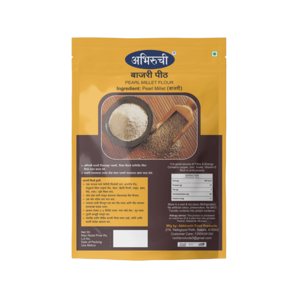Abhiruchi Bajri Pith (pearl millet flour) is made from well-sourced bajri and makes for soft bhakris as well as dhirda and thalipeeth of mixed pulses.