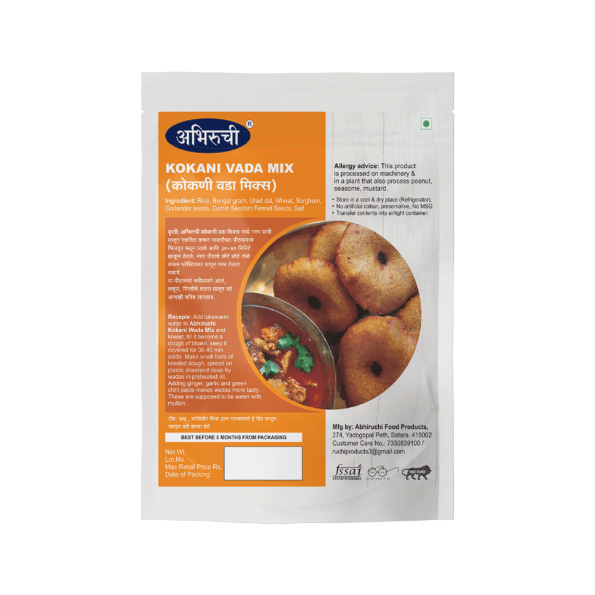 Add lukewarm water in Abhiruchi kokani wada mix and knead, till it become a dough of bhakri, keep it covered for 30-40 min aside. Make small balls of kneaded dough, spread on plastic sheet and deep fry vadas in preheated oil. Adding ginger, garlic and green chili paste makes vadas more tasty. These ate supposed to be eaten with mutton.